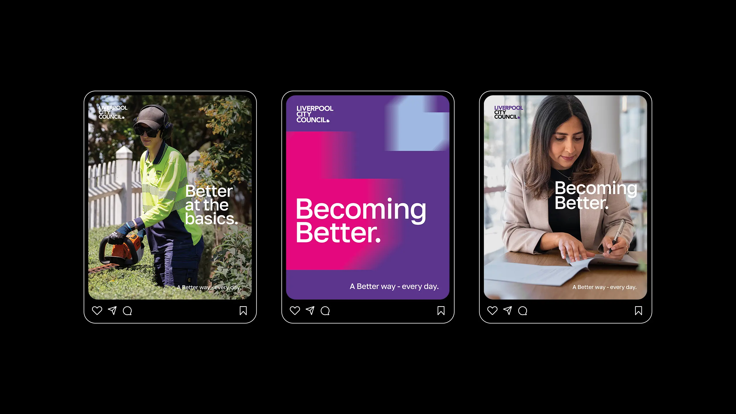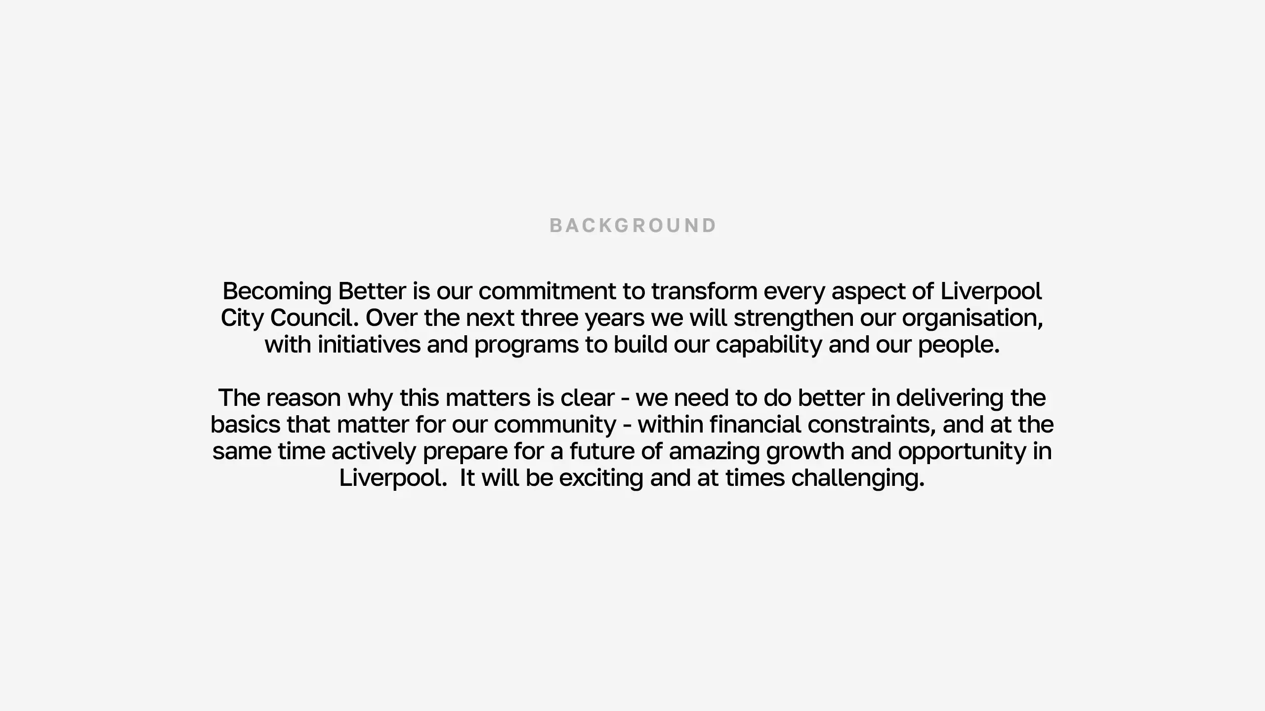We designed Becoming Better as the forefront campaign for Liverpool City Council’s three-year transformation program to strengthen the organisation, build capability, and improve community service delivery while preparing for Liverpool’s future growth.